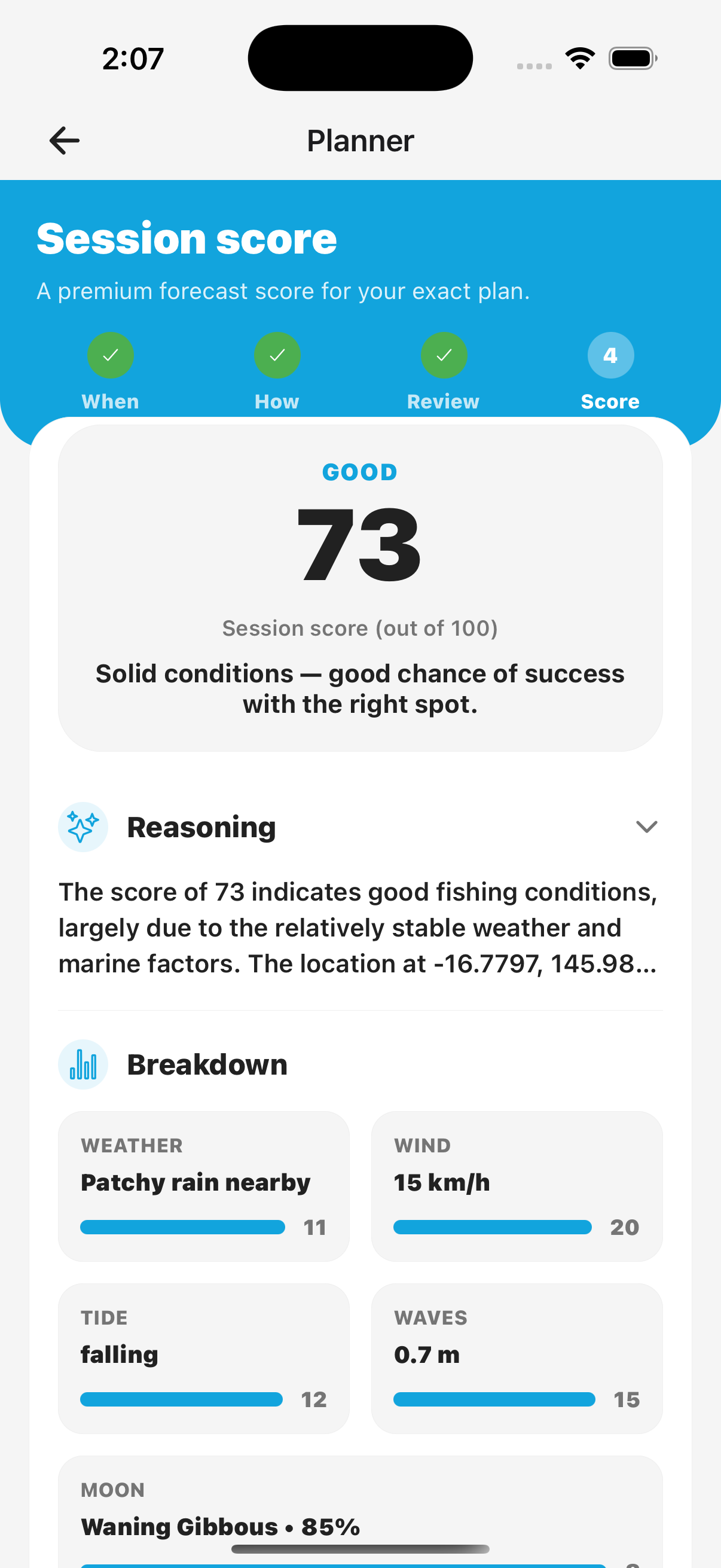 Fisho is the all-in-one fishing companion: log catches with auto tide and weather, discover smarter spots, compete live, and learn with AI.